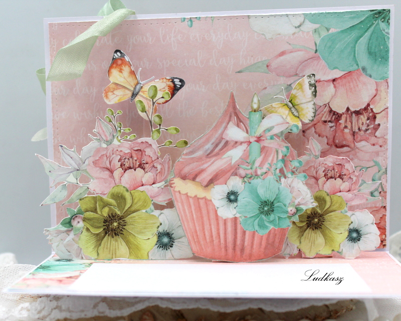 Wykorzystałam papiery Mintay Paper i zrobiłam kartkę pop-up.